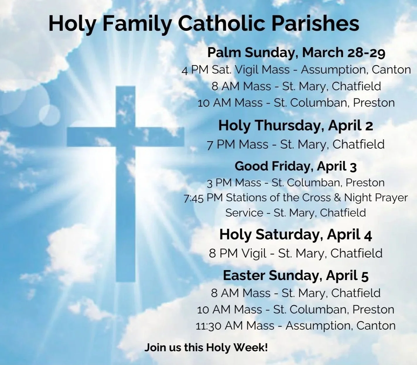 View Mass times and events, updated in real time.
