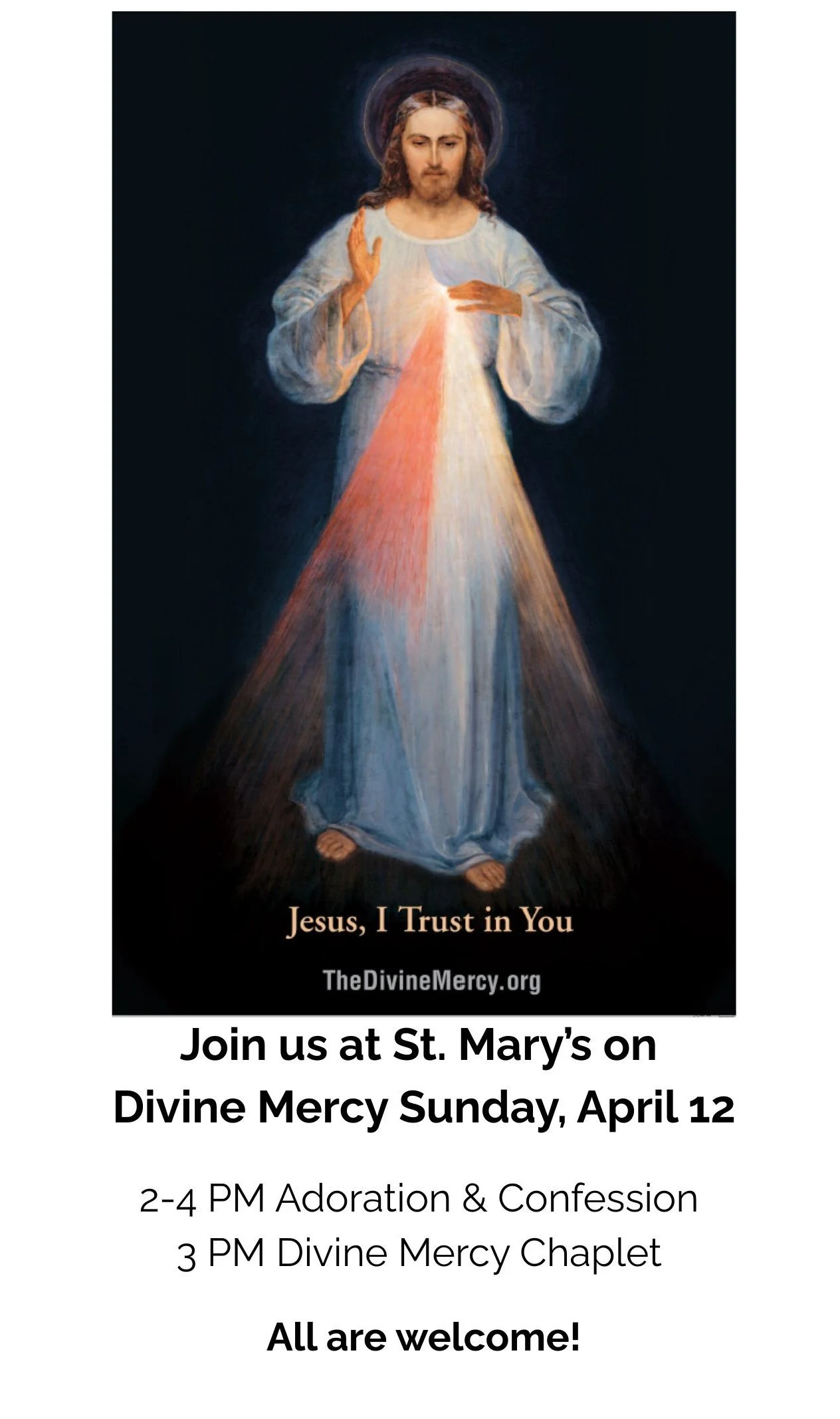 St. Mary 6:30 PM Wed (after 5:30 Faith Formation Meal)